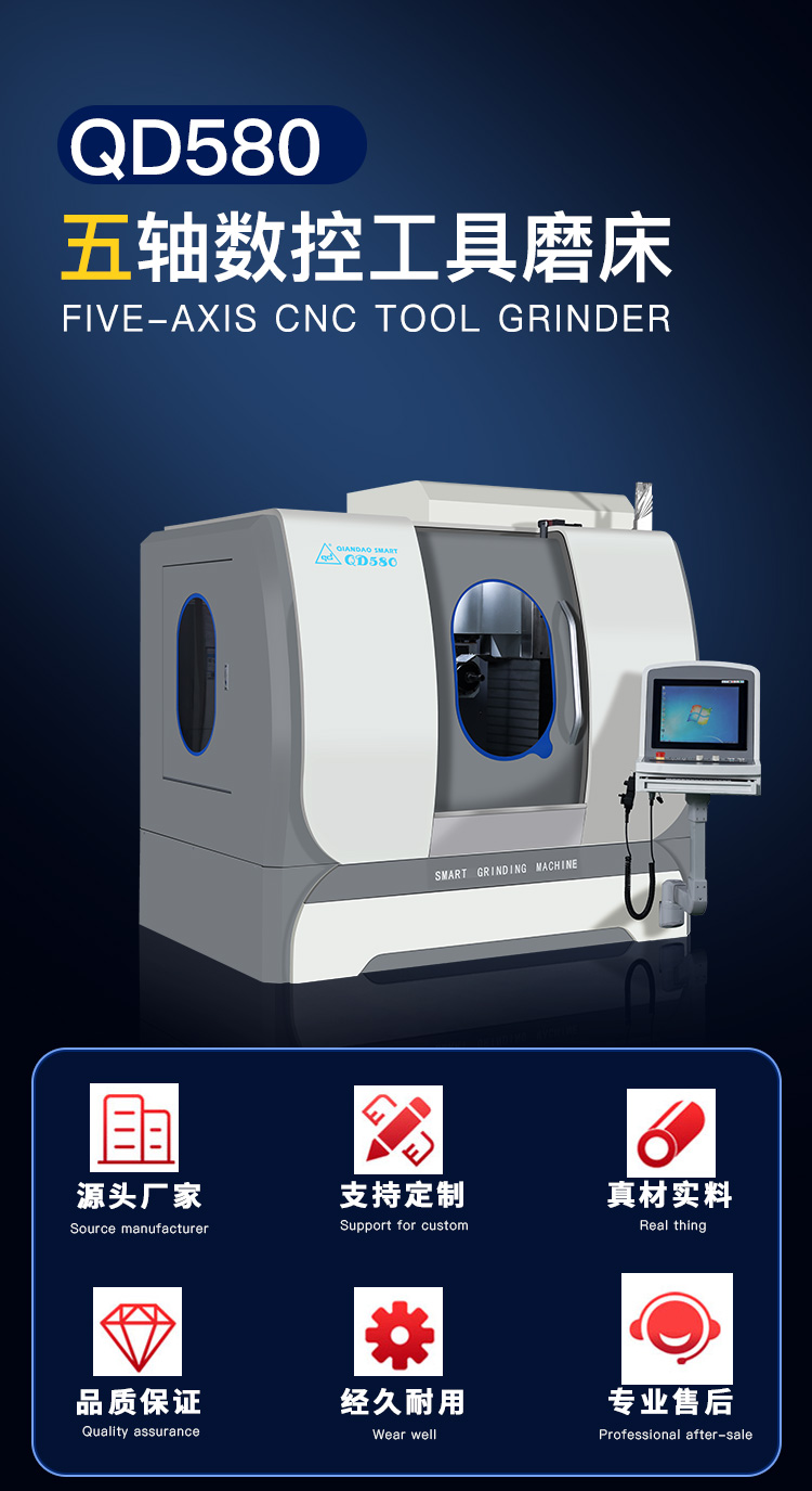 QD580是一款性能優(yōu)良的刀具磨削中心,適用于生產(chǎn)或修磨銑削類刀具、鉆削類刀具、成形刀具等。