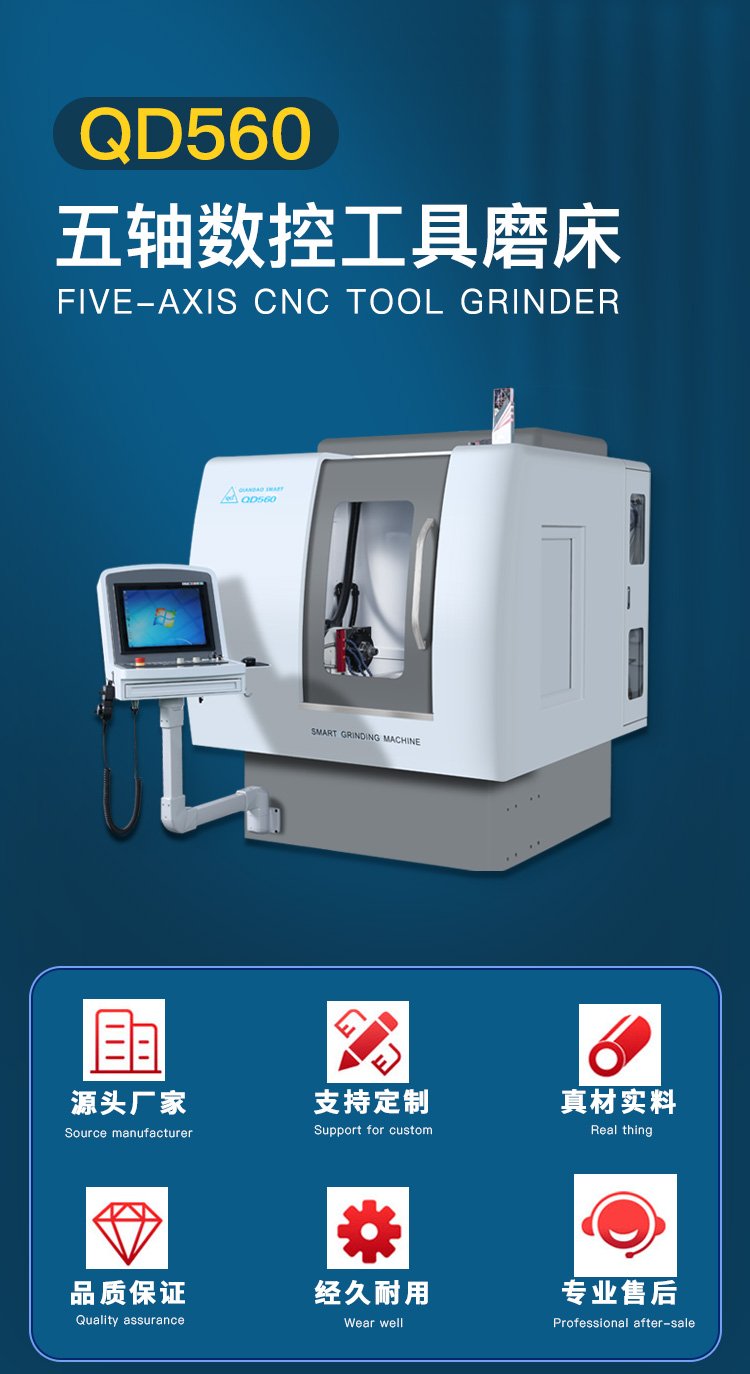 QD560是千島公司新研發(fā)的五軸五聯(lián)動(dòng)數(shù)控工具磨床,是一款高性價(jià)比刀具磨床,適用于生產(chǎn)或修磨各類銑削類刀具、鉆削類刀具、成形刀具等 。